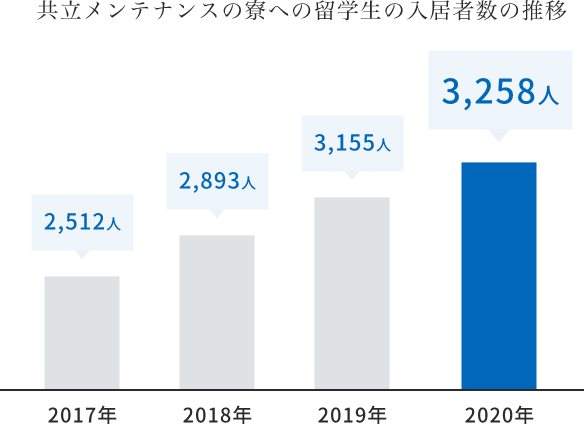 こうしたなか、共立メンテナンスは、長く学生寮の運営を手がけてきた豊富な経験・実績と、国際交流奨学財団の運営で培った留学生支援のノウハウを活かし、国際寮を設置する多くのお客様からその管理・運営業務を受託。安心でホスピタリティあふれる、多彩なサービスを提供しています。